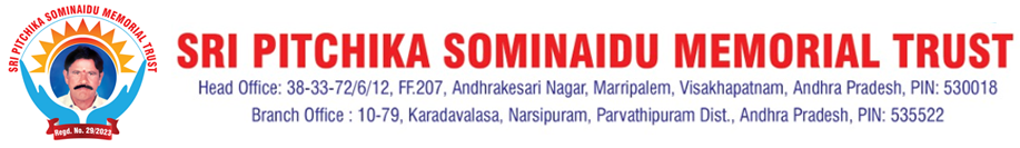 Sri Pitchika Sominaidu Memorial Trust is a Non-Government and Non-Profit making organization, established to work in the areas of Health, Education, relief of poor, and to provide amenities and facilities to those who can’t afford.